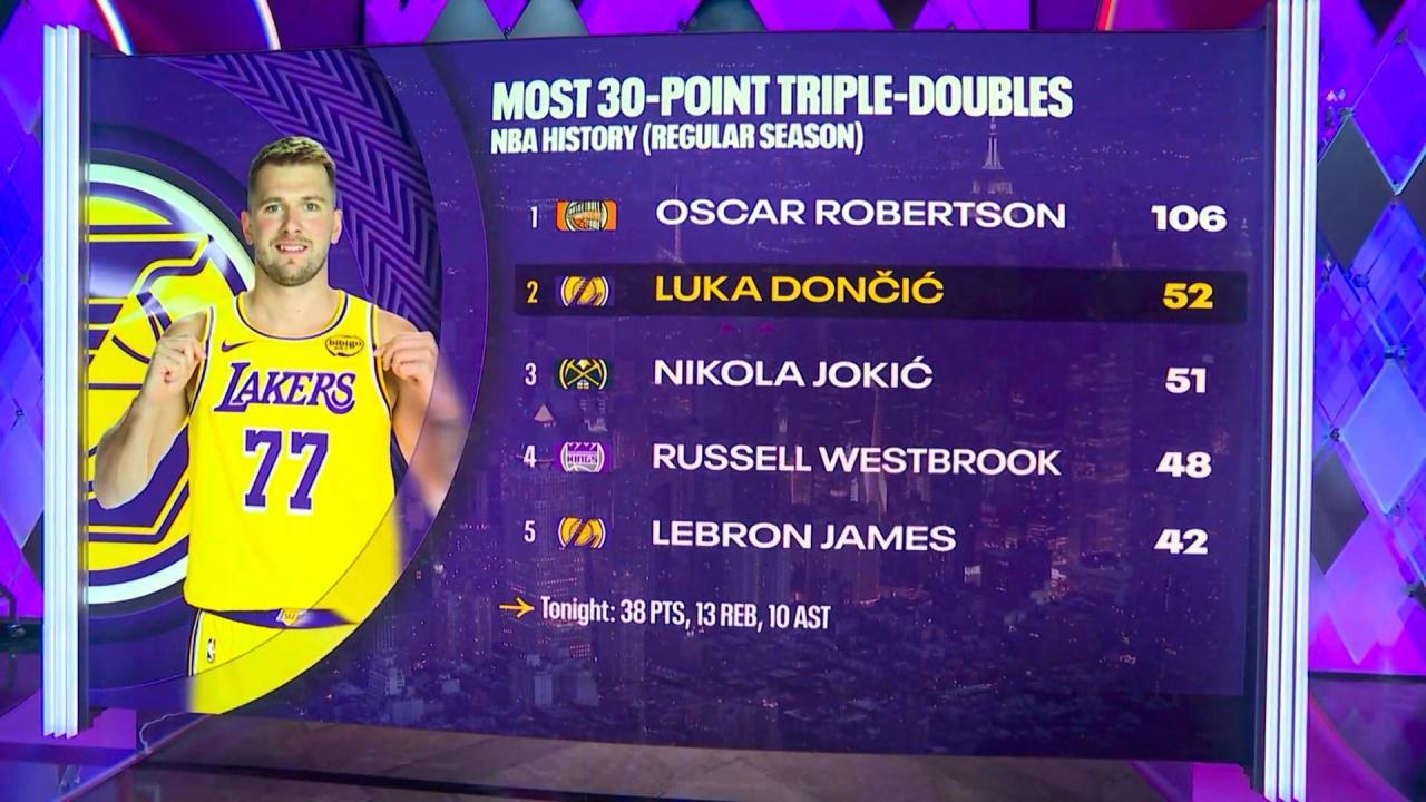 又轰38+13+10大号三双,东契奇超约基奇升历史第二!有你之后湖人不再惧怕掘金。