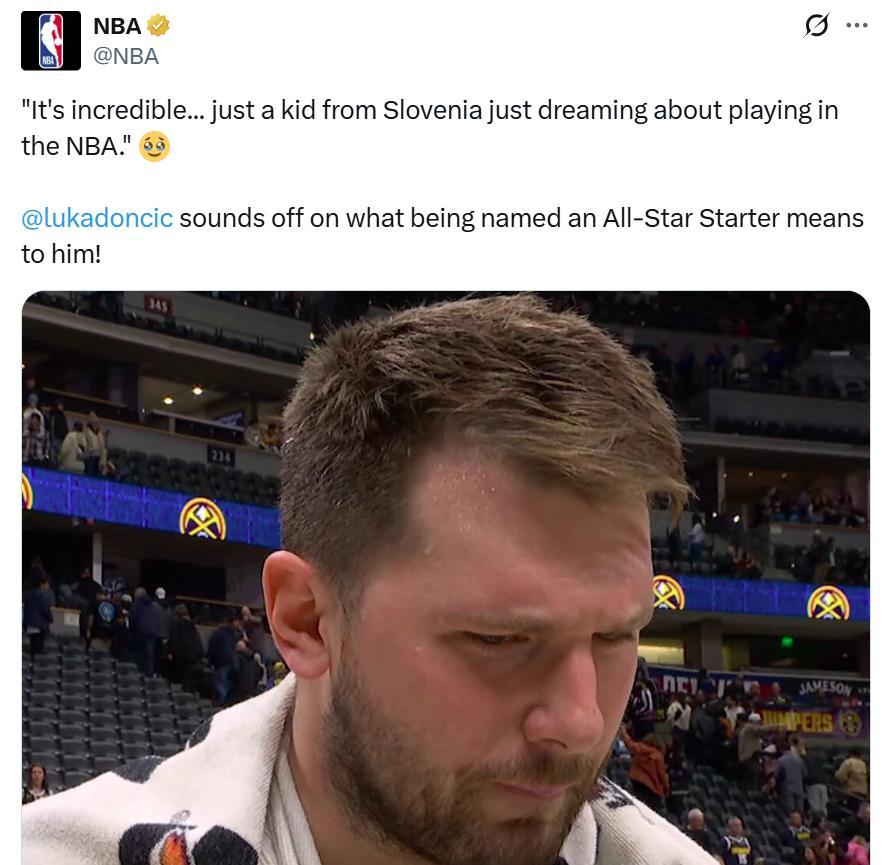 赛后谈及自己当选票王,东契奇说道:“这简直让人难以置信,我感谢每一位为我投票的球迷,作为一名来自斯洛文尼亚的孩子,我为梦想而前往NBA打球,这对于我来说是一种荣耀。”